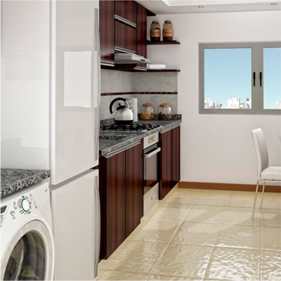 . Amoblamientos integrales en cocinas, con alacenas y muebles bajo mesada de primera marca.