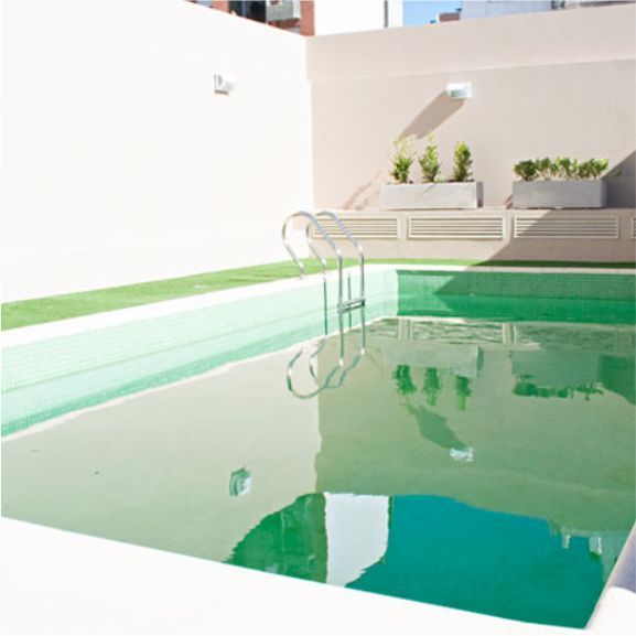 2 torres: una al frente de 12 pisos, y otra al contrafrente, de 6 pisos, con departamentos de 1 y 2 dormitorios. 2 niveles de cocheras. Piscina y solárium. Quincho.
